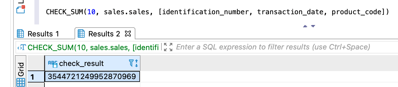 CHECK_SUM(10,sales.sales,[identification_number, transaction_date, product_code])