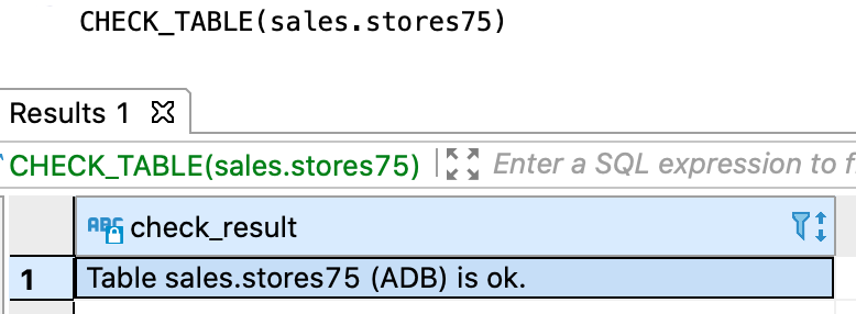Ответ CHECK_TABLE с проверкой только в ADB