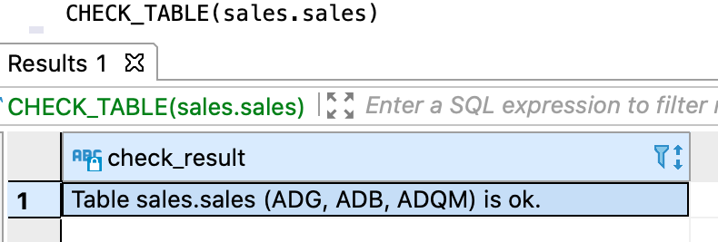 CHECK_TABLE(sales.sales)